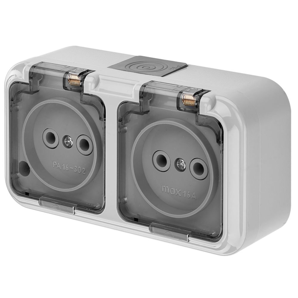 Розетка влагоз.РА16-302.02 Аква с проз.крышкой (24) 2 б.з.
