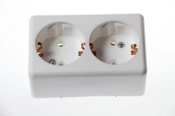 Розетка Элкон 2-от/у,белая РА16-У05 карболит-керамика (20/200)